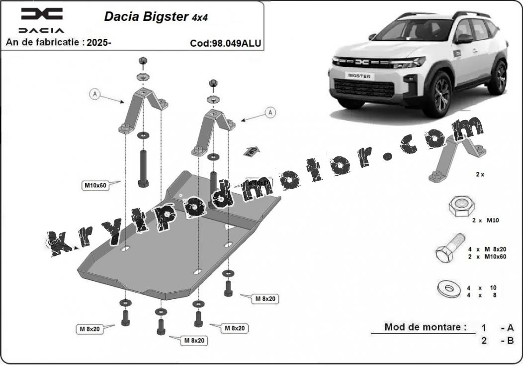 | Kryt pod motor je nová a dokonale padne pro všechny verze Dacia Bigster vyrobené v letech 2025 až 2025. |