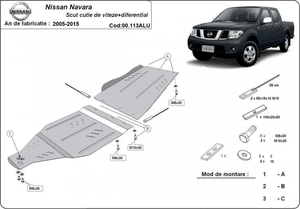 | Kryt pod motor je nová a dokonale padne pro všechny verze Nissan Navara vyrobené v letech 2005 až 2015. |