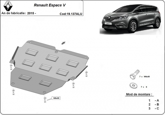| Kryt pod motor je nová a dokonale padne pro všechny verze Renault Espace vyrobené v letech 2015 až 2026. |