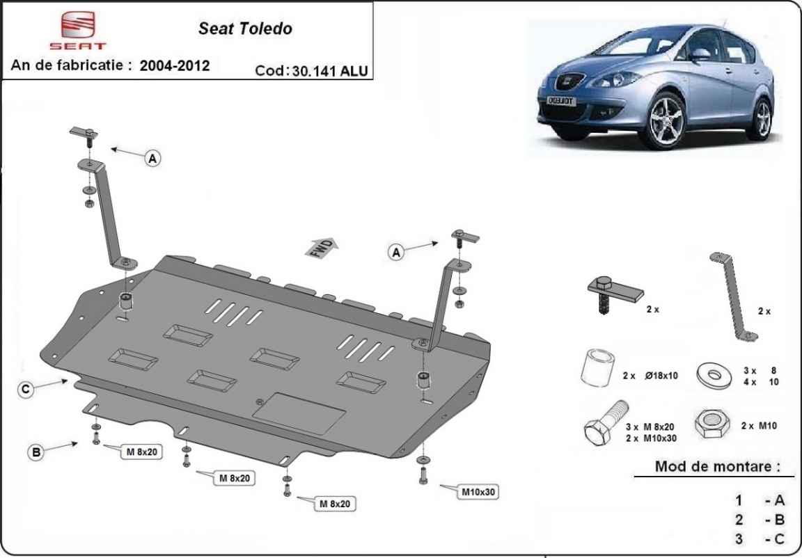 | Kryt pod motor je nová a dokonale padne pro všechny verze Seat Toledo 3 vyrobené v letech 2004 až 2012. |