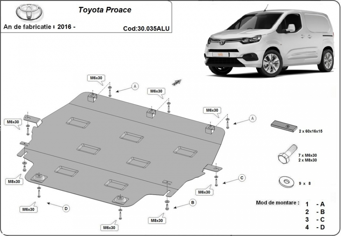 | Kryt pod motor je nová a dokonale padne pro všechny verze Toyota Proace vyrobené v letech 2016 až 2026. |