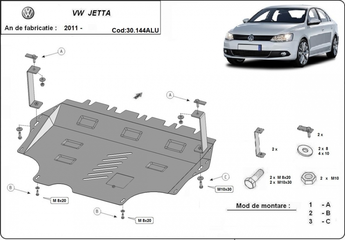 | Kryt pod motor je nová a dokonale padne pro všechny verze VW Jetta vyrobené v letech 2011 až 2017. |