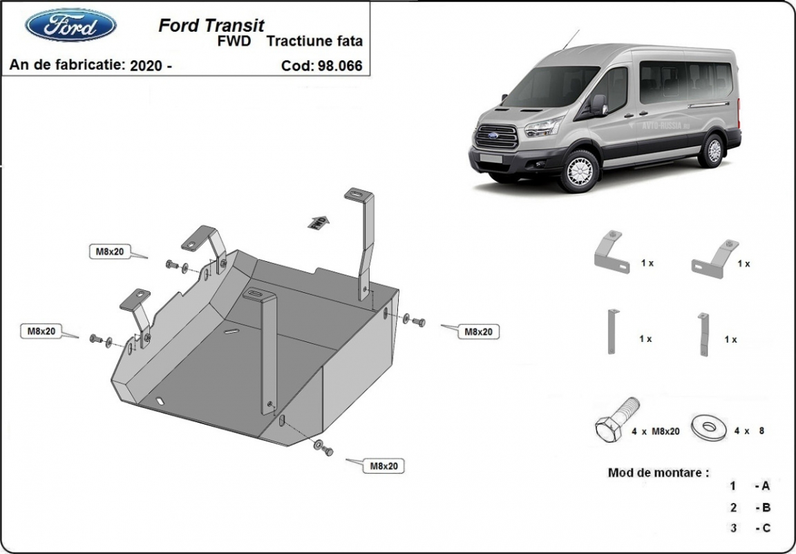 | Kryt pod motor je nová a dokonale padne pro všechny verze Ford Transit vyrobené v letech 2020 až 2026. |
