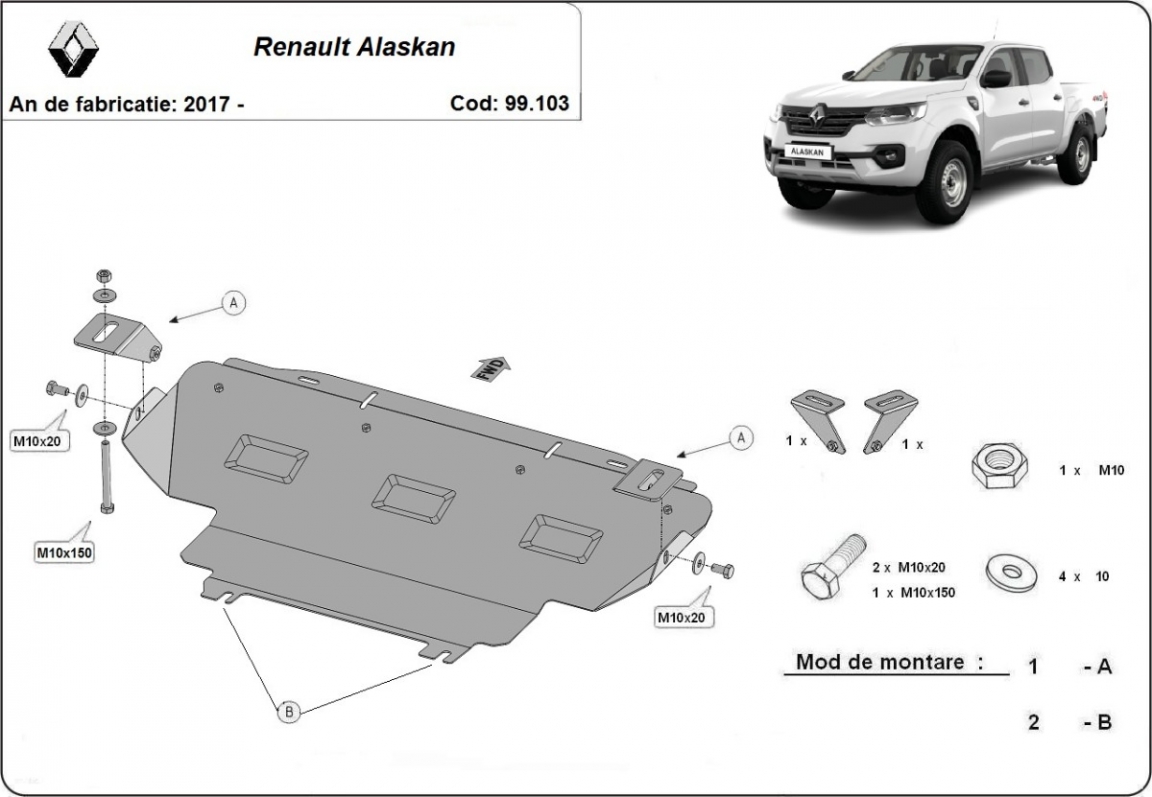 | Kryt pod motor je nová a dokonale padne pro všechny verze Renault Alaskan vyrobené v letech 2017 až 2026. |