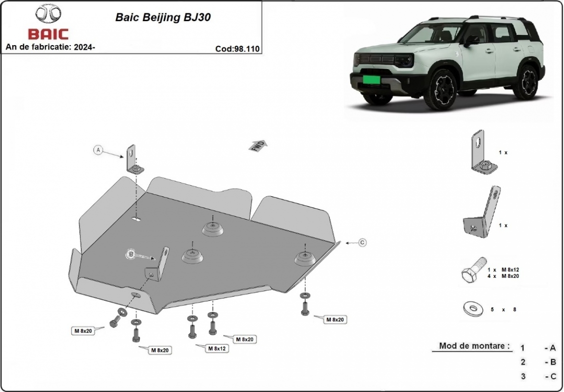 | Kryt pod motor je nová a dokonale padne pro všechny verze Baic Beijing BJ30 vyrobené v letech 2024 až 2026. |
