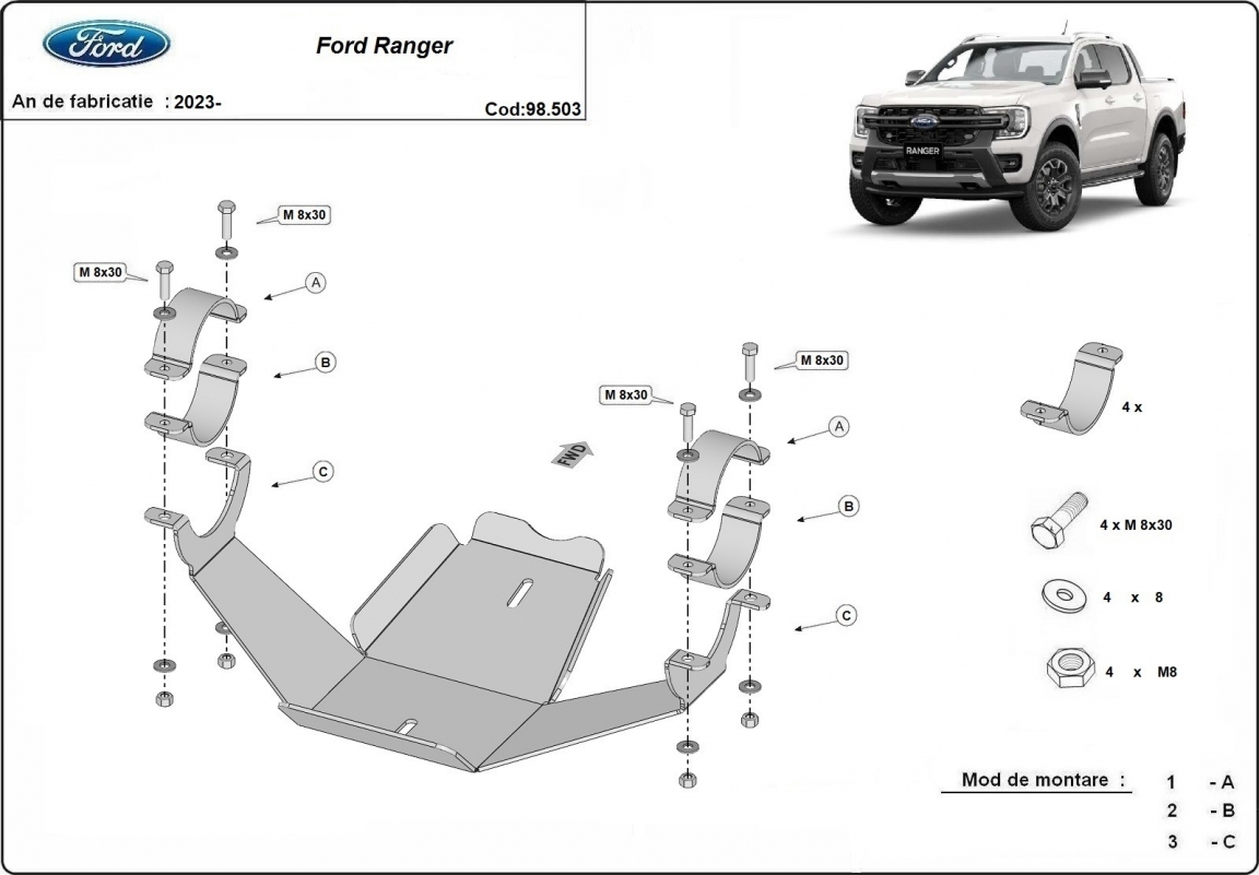 | Kryt pod motor je nová a dokonale padne pro všechny verze Ford Ranger vyrobené v letech 2023 až 2026. |