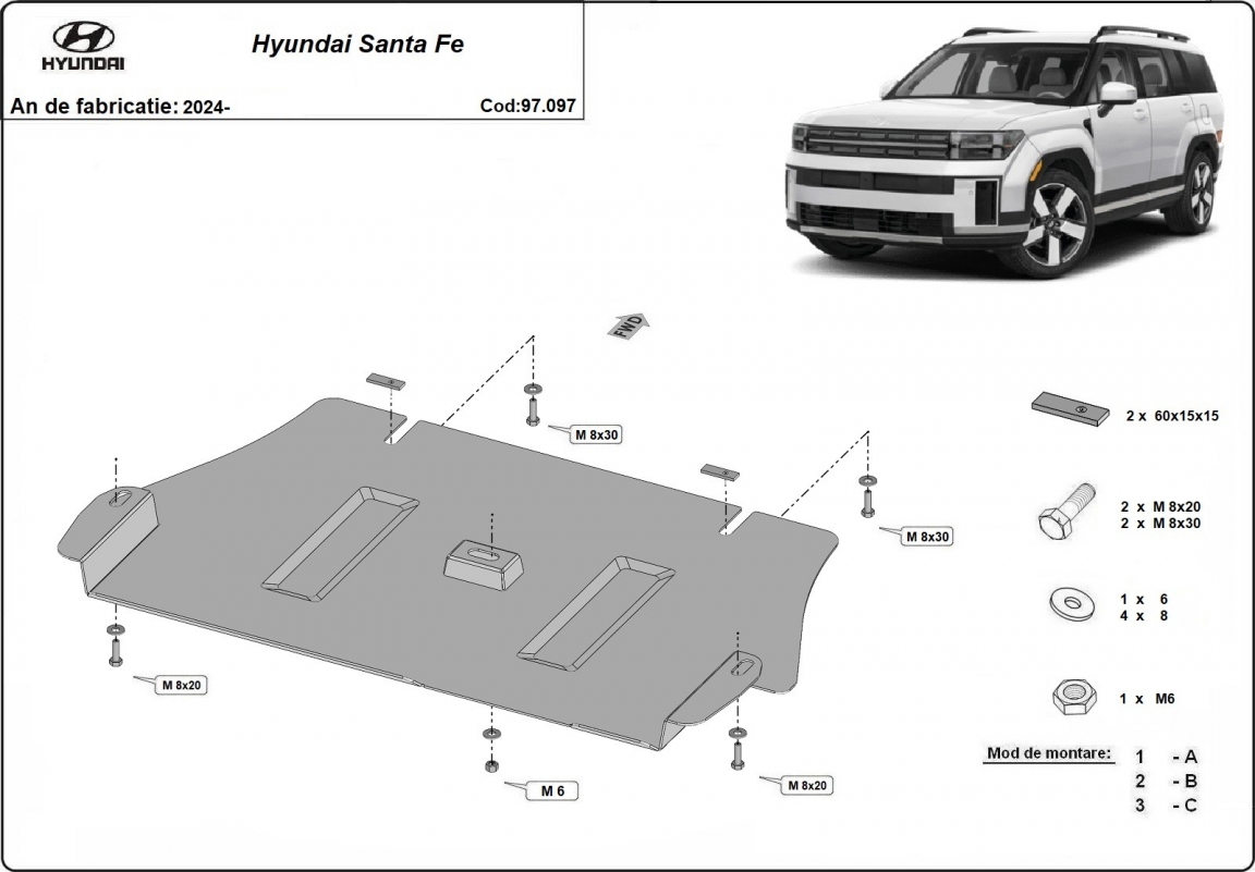 | Kryt pod motor je nová a dokonale padne pro všechny verze Hyundai Santa Fe vyrobené v letech 2024 až 2026. |