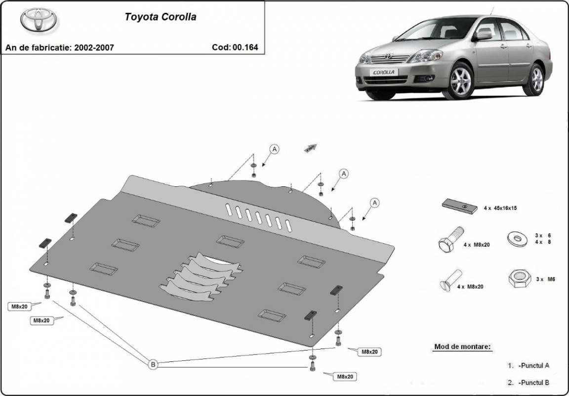 | Kryt pod motor je nová a dokonale padne pro všechny verze Toyota Corolla vyrobené v letech 2002 až 2007. |