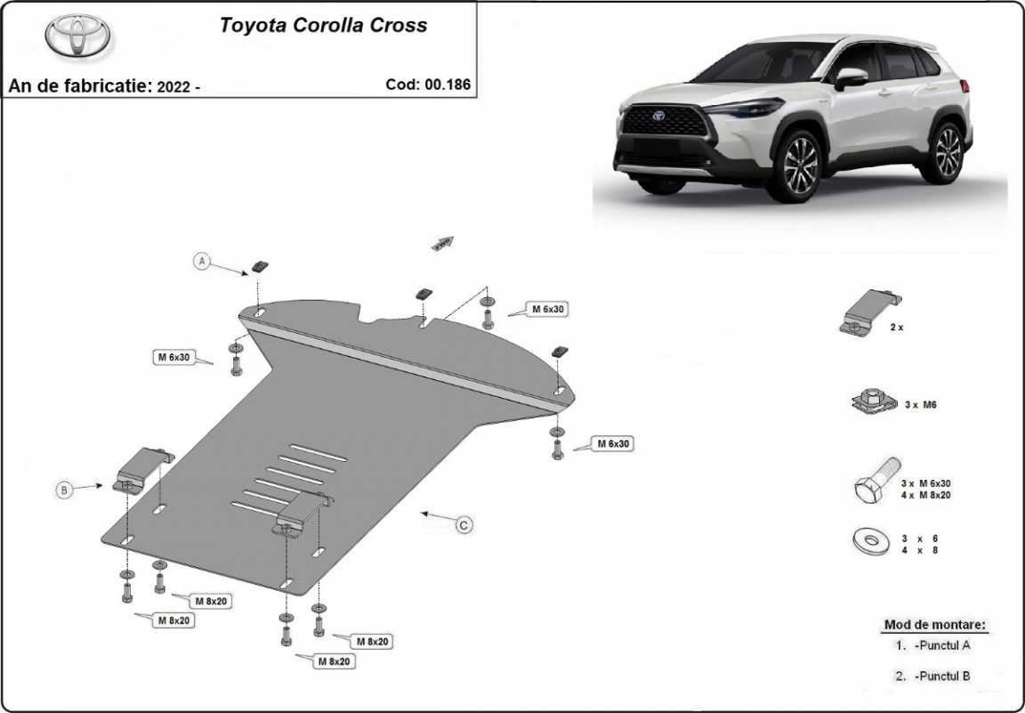 | Kryt pod motor je nová a dokonale padne pro všechny verze Toyota Corolla Cross vyrobené v letech 2022 až 2026. |