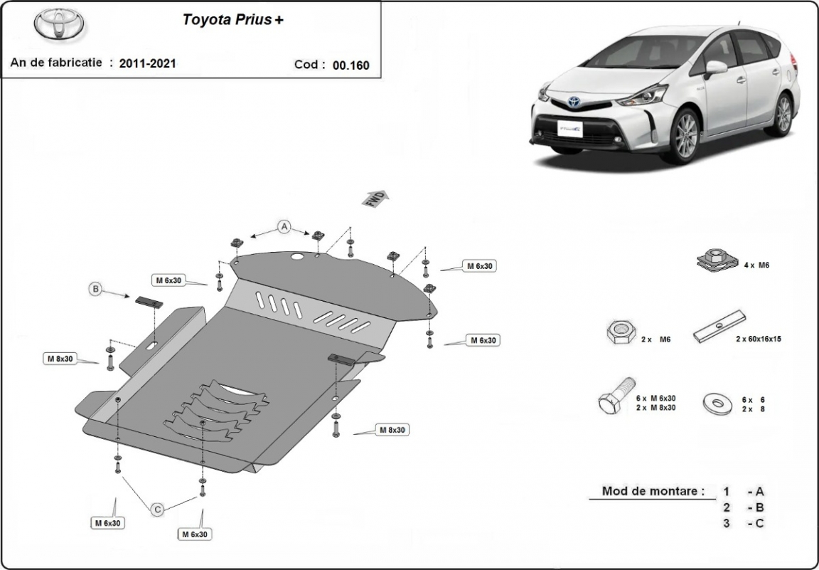 | Kryt pod motor je nová a dokonale padne pro všechny verze Toyota Prius 3+ vyrobené v letech 2011 až 2021. |