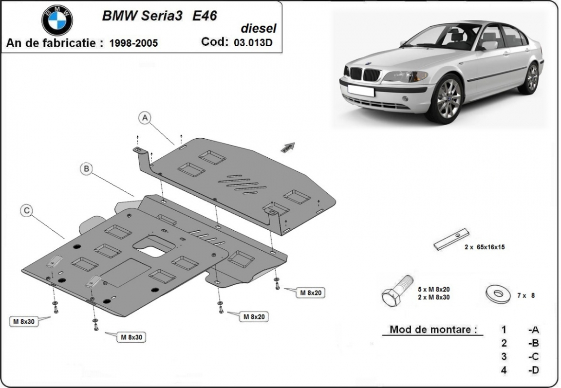 Kryt pod motor BMW Seria 3 E46 - Diesel (1998-2005)