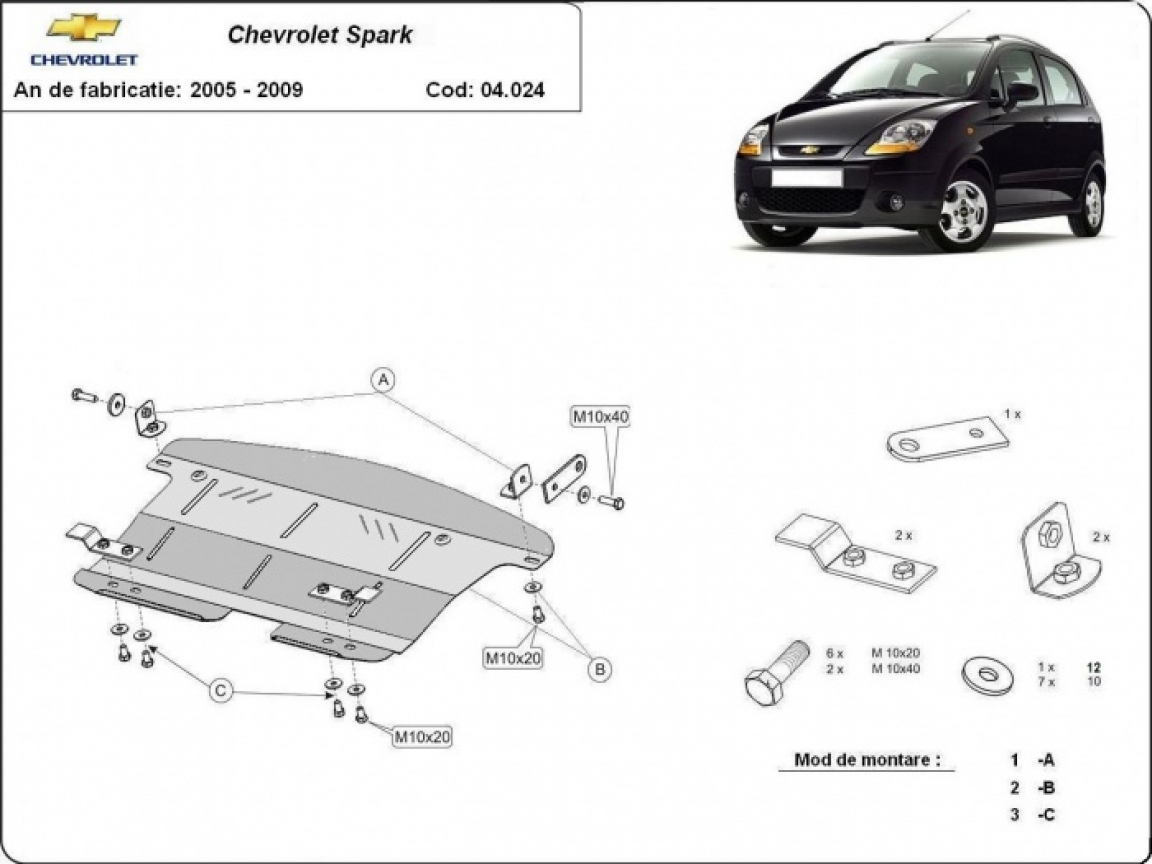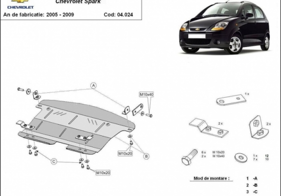 | Kryt pod motor je nová a dokonale padne pro všechny verze Chevrolet Spark vyrobené v letech 2005 až 2009. |