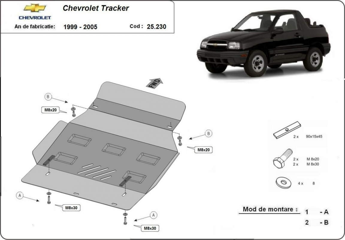 | Kryt pod motor je nová a dokonale padne pro všechny verze Chevrolet Tracker vyrobené v letech 1999 až 2005. |