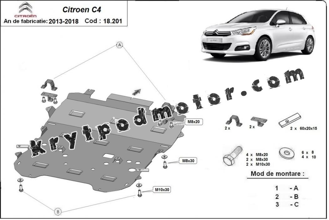 | Kryt pod motor je nová a dokonale padne pro všechny verze Citroen c4 vyrobené v letech 2017 až 2025. |