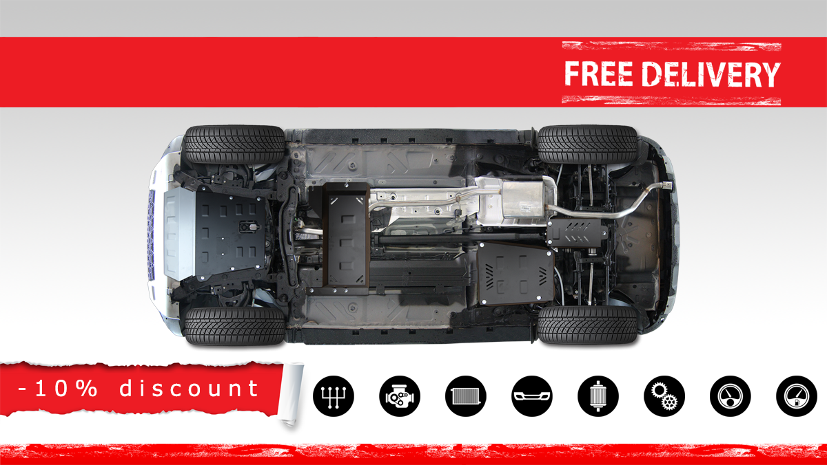 | Zakryva přední část vozu, takže škody způsobené prahem a blátem vstupující do prostoru motoru jsou sníženy. |