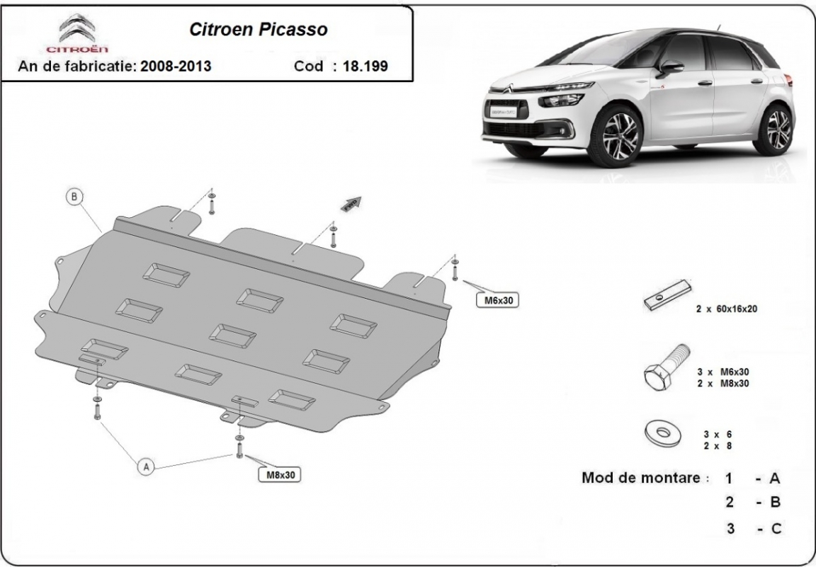 | Kryt pod motor je nová a dokonale padne pro všechny verze Citroen C4 Picasso vyrobené v letech 2008 až 2013. |