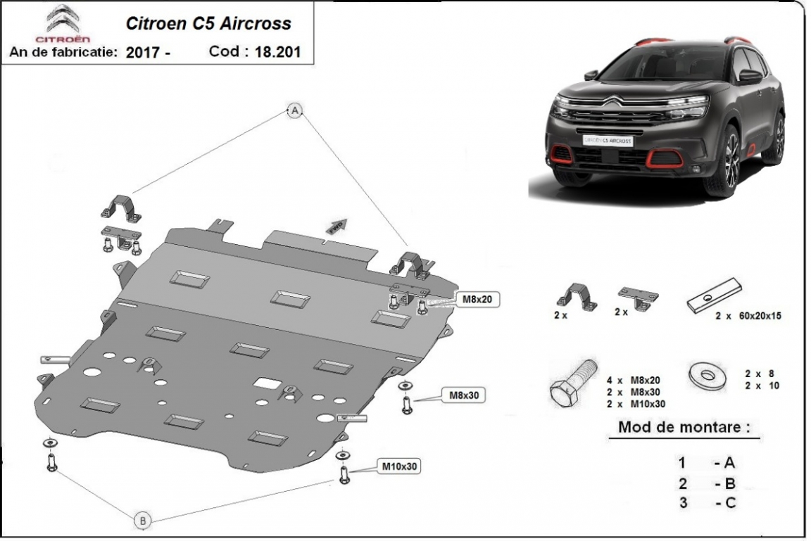 | Kryt pod motor je nová a dokonale padne pro všechny verze Citroen C5 Aircross vyrobené v letech 2017 až 2026. |