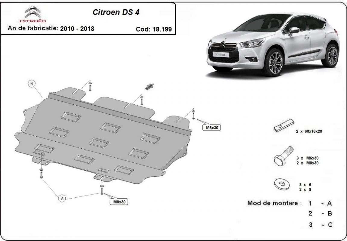 | Kryt pod motor je nová a dokonale padne pro všechny verze Citroen DS4 vyrobené v letech 2010 až 2018. |