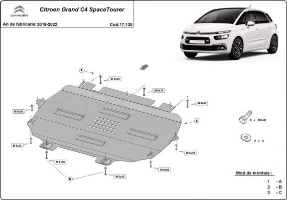 | Kryt pod motor je nová a dokonale padne pro všechny verze Citroen Grand C4 SpaceTourer vyrobené v letech 2018 až 2022. |