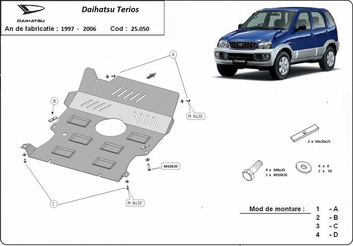 | Kryt pod motor je nová a dokonale padne pro všechny verze Daihatsu Terios vyrobené v letech 1997 až 2006. |