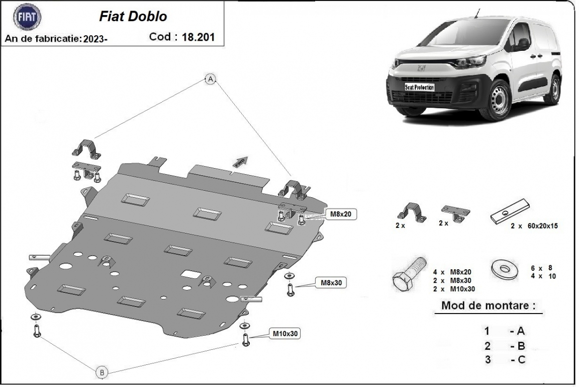 | Kryt pod motor je nová a dokonale padne pro všechny verze Fiat Doblo vyrobené v letech 2023 až 2026. |