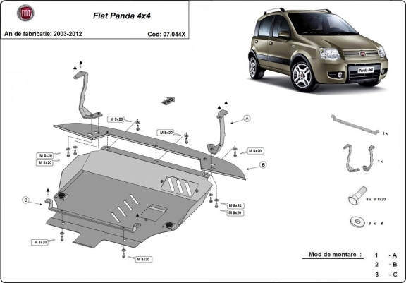 | Kryt pod motor je nová a dokonale padne pro všechny verze Fiat Panda 4x4 vyrobené v letech 2003 až 2012. |