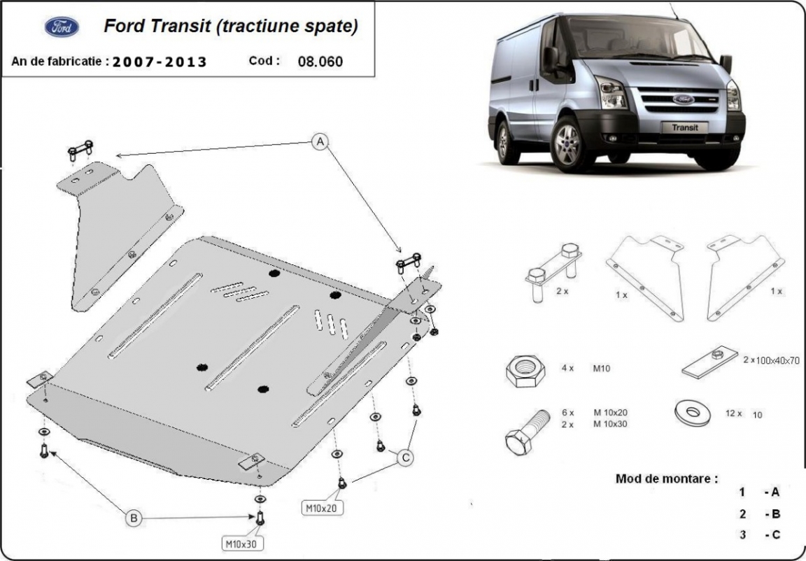 | Kryt pod motor je nová a dokonale padne pro všechny verze Ford Transit - RWD vyrobené v letech 2007 až 2013. |