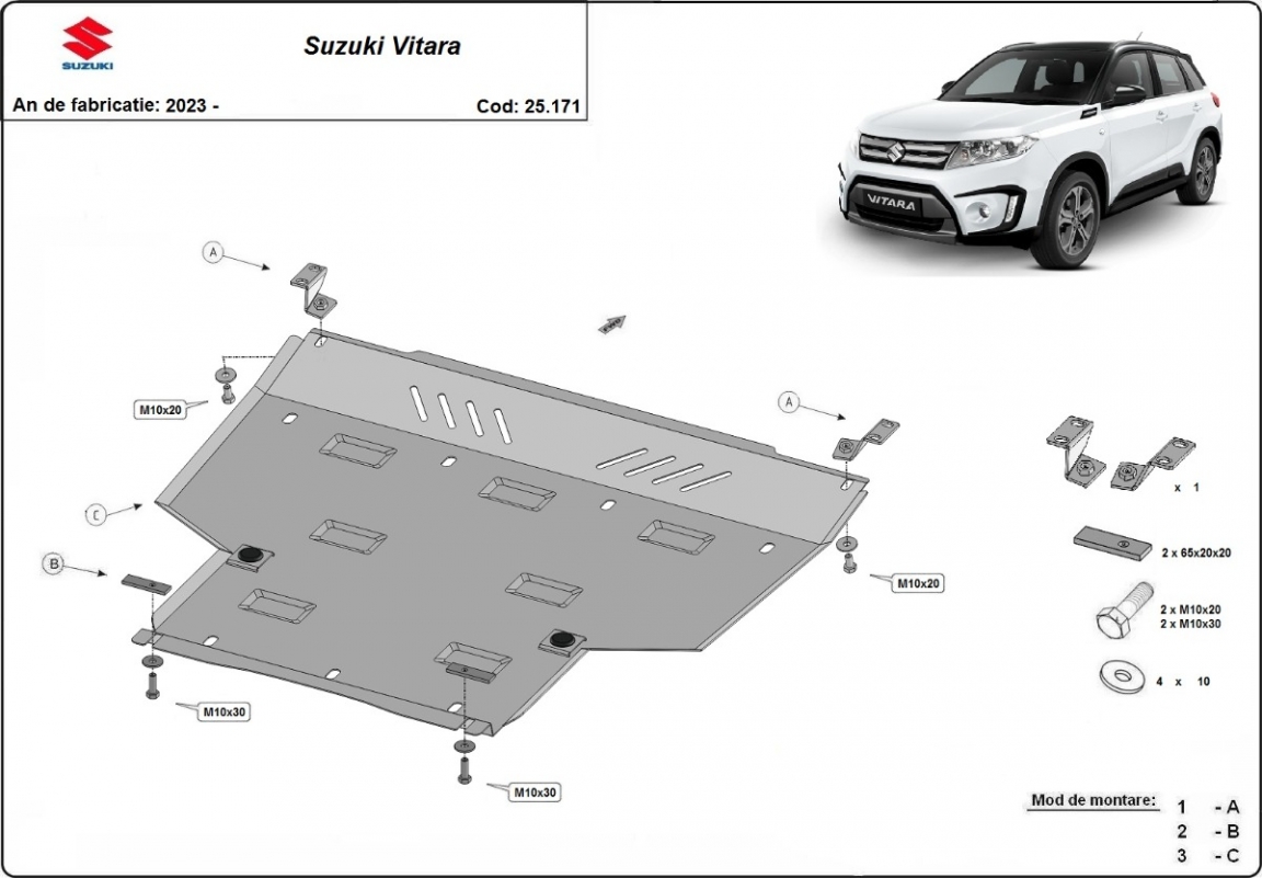 | Kryt pod motor je nová a dokonale padne pro všechny verze Suzuki Vitara vyrobené v letech 2023 až 2026. |