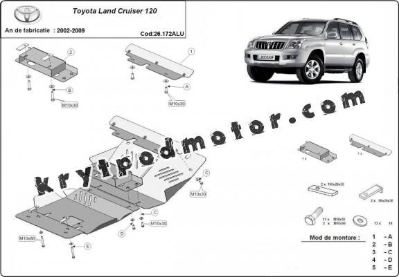 Kryt pod motor je nová a dokonale padne pro všechny verze Toyota Land Cruiser J120 vyrobené v letech 2002 až 2009. |