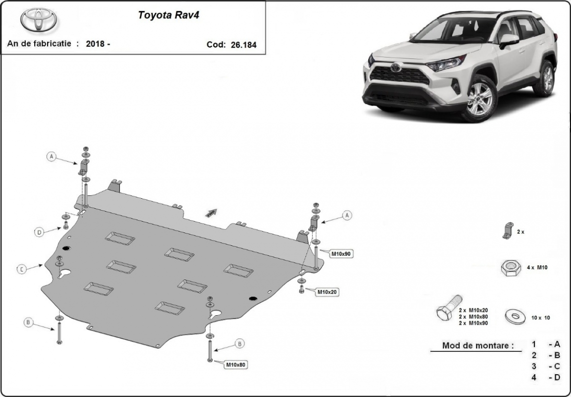 | Kryt pod motor je nová a dokonale padne pro všechny verze Toyota RAV4 vyrobené v letech 2018 až 2026. |