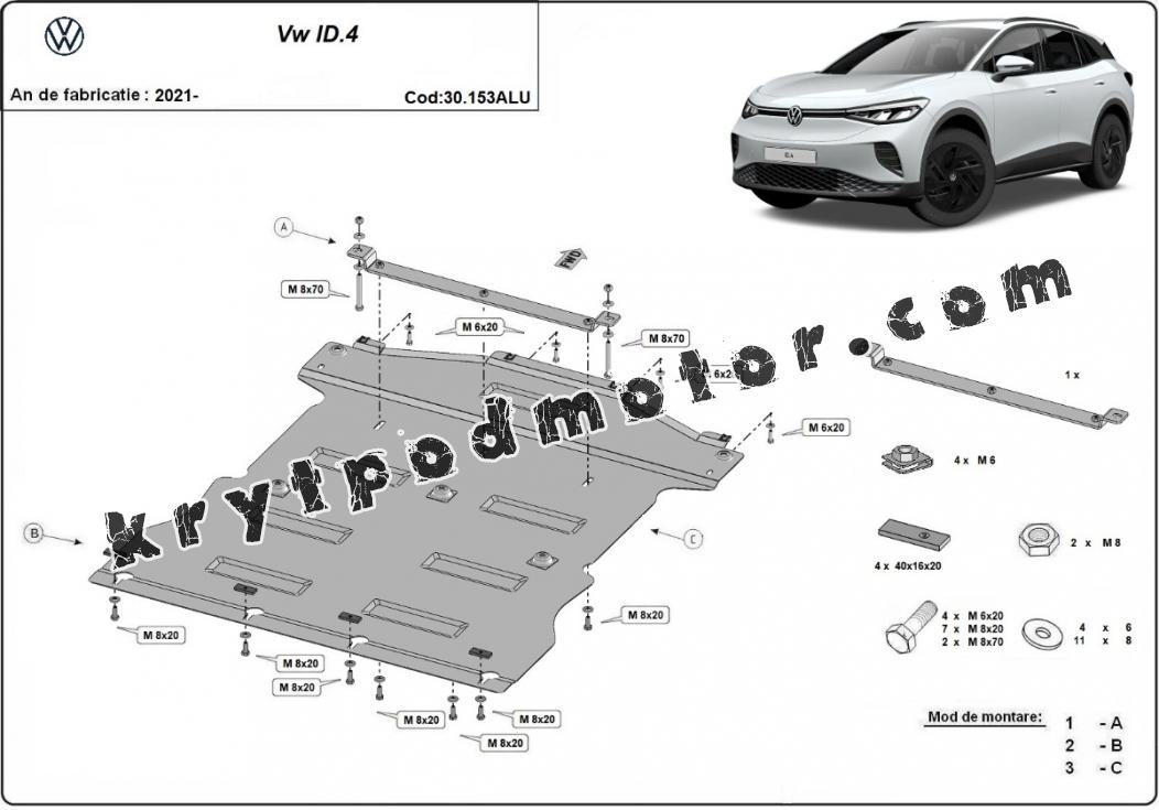 Kryt pod motor je nová a dokonale padne pro všechny verze Volkswagen ID.4 vyrobené v letech 2021 až 2025. |