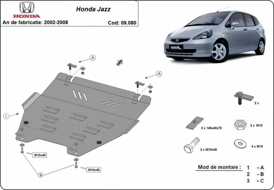 | Kryt pod motor je nová a dokonale padne pro všechny verze Honda Jazz vyrobené v letech 2002 až 2008. |
