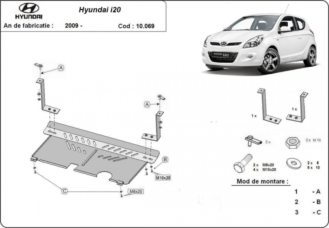 | Kryt pod motor je nová a dokonale padne pro všechny verze Hyundai i 20 vyrobené v letech 2009 až 2014. |