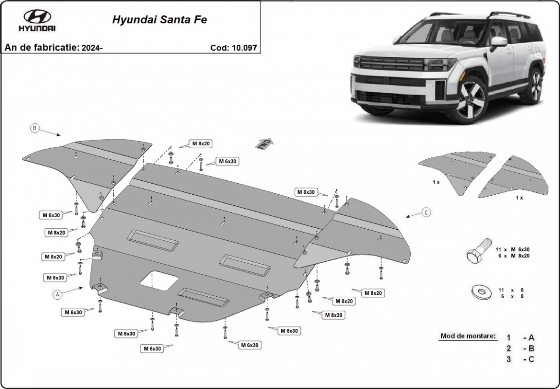 | Kryt pod motor je nová a dokonale padne pro všechny verze Hyundai Santa Fe vyrobené v letech 2024 až 2026. |