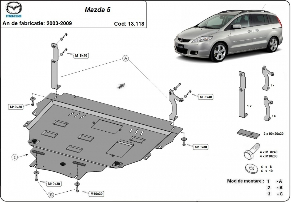 | Kryt pod motor je nová a dokonale padne pro všechny verze Mazda 5 vyrobené v letech 2003 až 2009. |