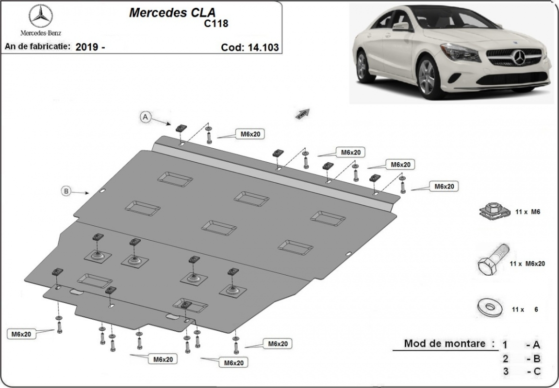 | Kryt pod motor je nová a dokonale padne pro všechny verze Mercedes CLA C118 vyrobené v letech 2019 až 2026. |