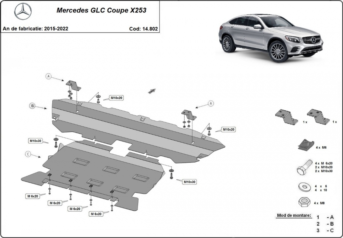 | Kryt pod motor je nová a dokonale padne pro všechny verze Mercedes GLC Coupe X253 vyrobené v letech 2015 až 2022. |