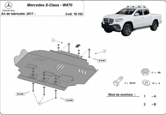 | Kryt pod motor je nová a dokonale padne pro všechny verze Mercedes X-Class vyrobené v letech 2017 až 2020. |
