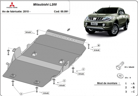 | Kryt pod motor je nová a dokonale padne pro všechny verze Mitsubishi L200 vyrobené v letech 2015 až 2026. |