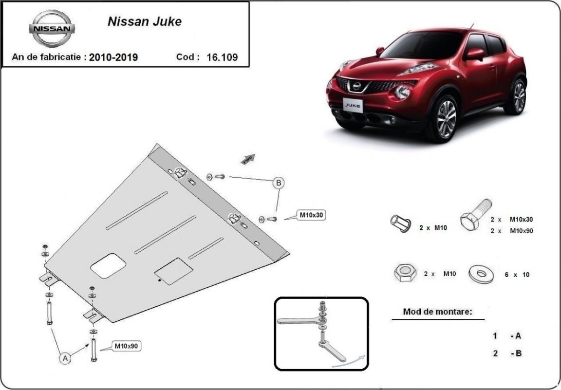 | Kryt pod motor je nová a dokonale padne pro všechny verze Nissan Juke vyrobené v letech 2010 až 2019. |