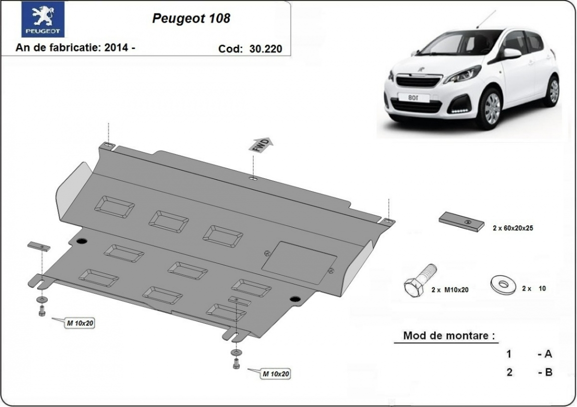 | Kryt pod motor je nová a dokonale padne pro všechny verze Peugeot 108 vyrobené v letech 2014 až 2021. |