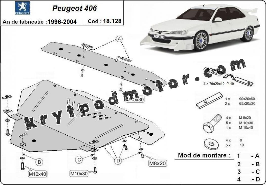 | Kryt pod motor je nová a dokonale padne pro všechny verze Peugeot 406 vyrobené v letech 1996 až 2004. |