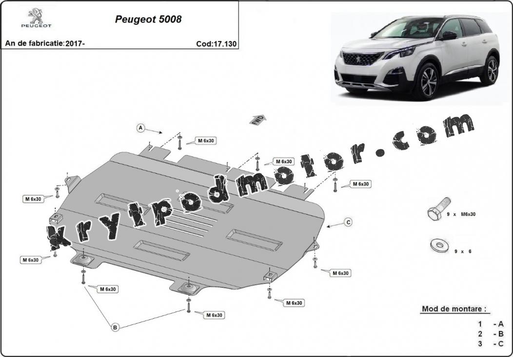 | Kryt pod motor je nová a dokonale padne pro všechny verze Peugeot 5008 vyrobené v letech 2017 až 2025. |