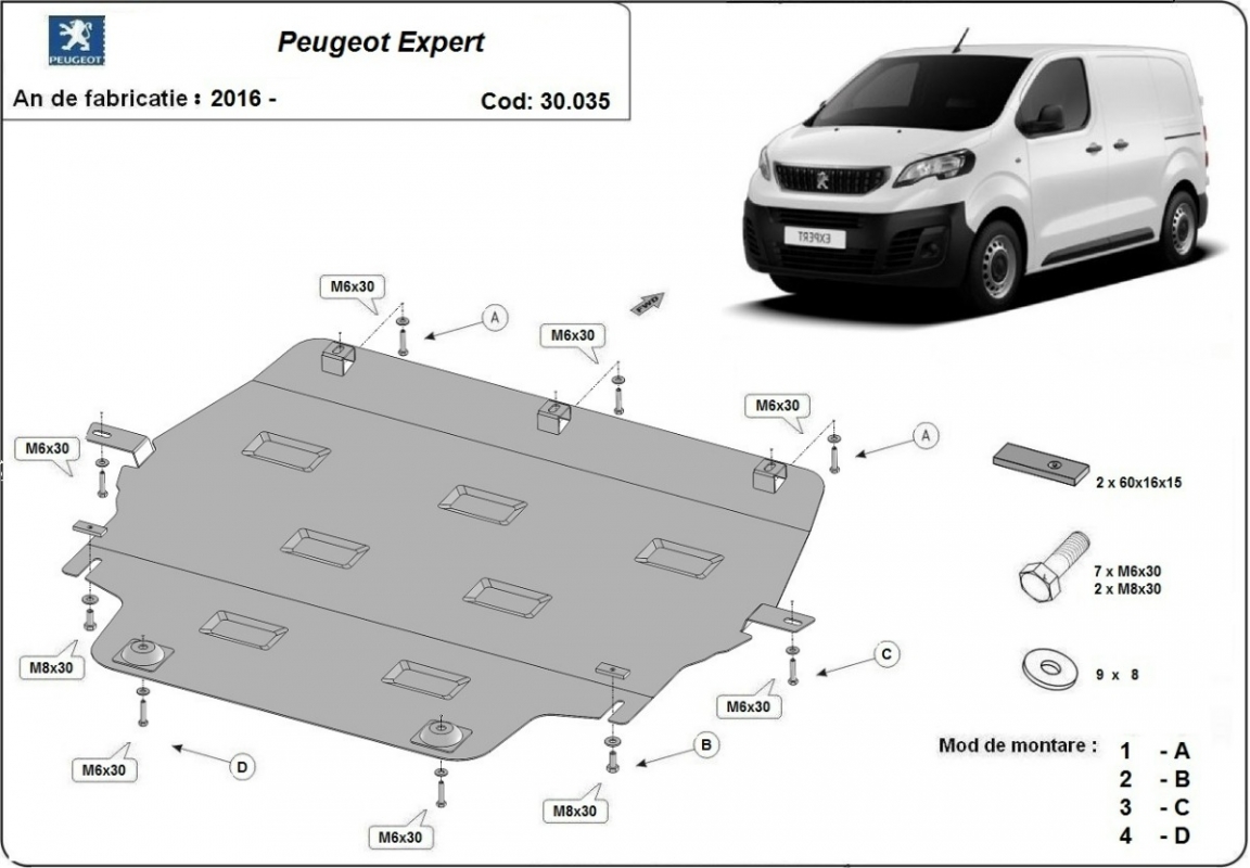 | Kryt pod motor je nová a dokonale padne pro všechny verze Peugeot Expert vyrobené v letech 2016 až 2026. |