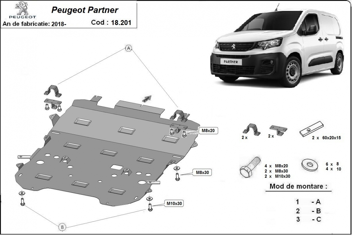 | Kryt pod motor je nová a dokonale padne pro všechny verze Peugeot Partner vyrobené v letech 2018 až 2026. |