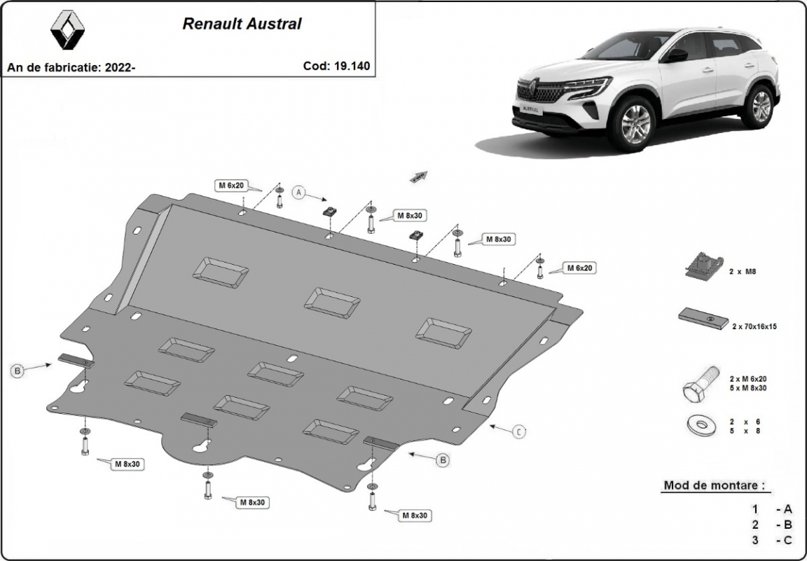 | Kryt pod motor je nová a dokonale padne pro všechny verze Renault Austral vyrobené v letech 2022 až 2026. |