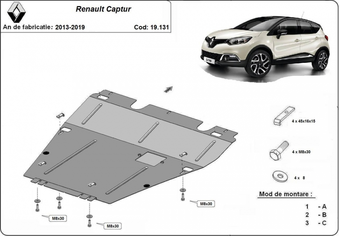| Kryt pod motor je nová a dokonale padne pro všechny verze Renault Captur vyrobené v letech 2013 až 2019. |