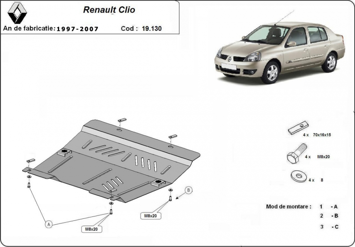 | Kryt pod motor je nová a dokonale padne pro všechny verze Renault Clio 2 vyrobené v letech 1997 až 2007. |