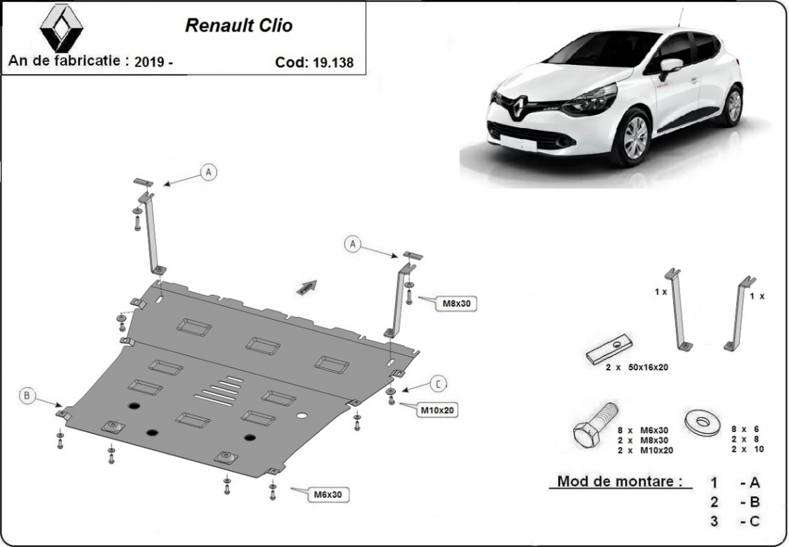 | Kryt pod motor je nová a dokonale padne pro všechny verze Renault Clio 5 vyrobené v letech 2019 až 2026. |