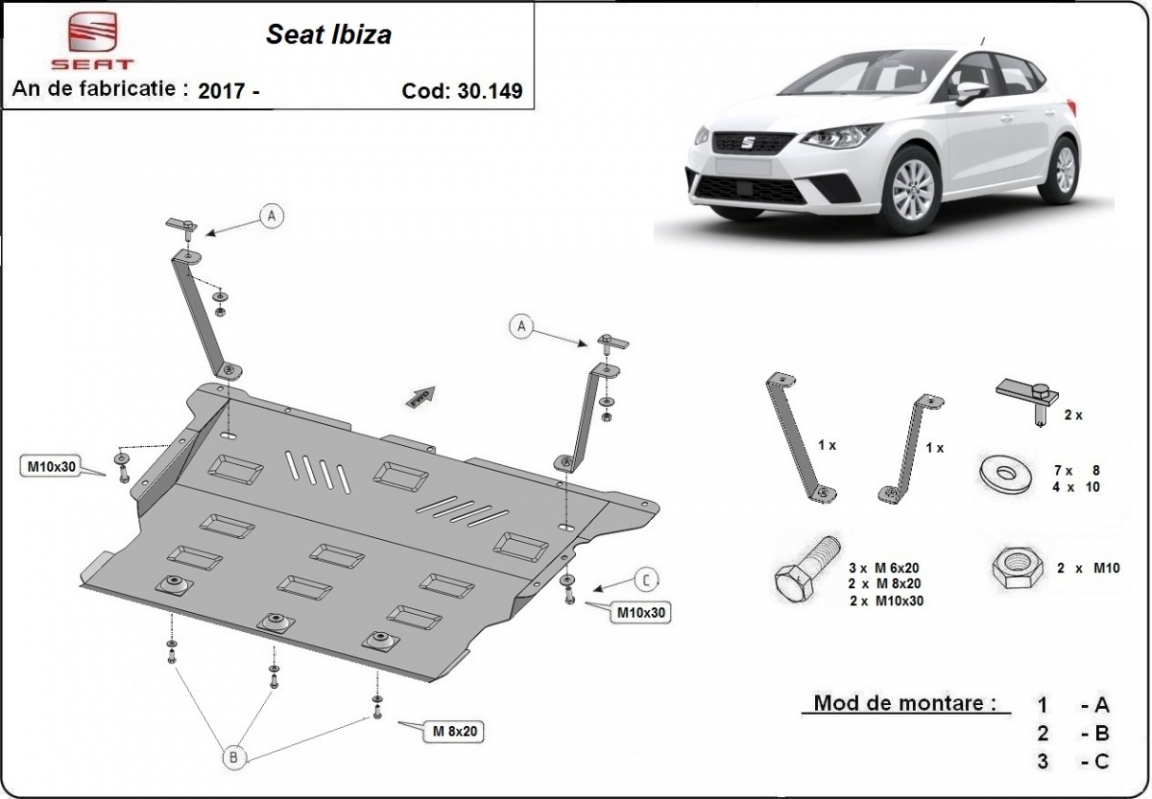 | Kryt pod motor je nová a dokonale padne pro všechny verze Seat Ibiza vyrobené v letech 2017 až 2026. |